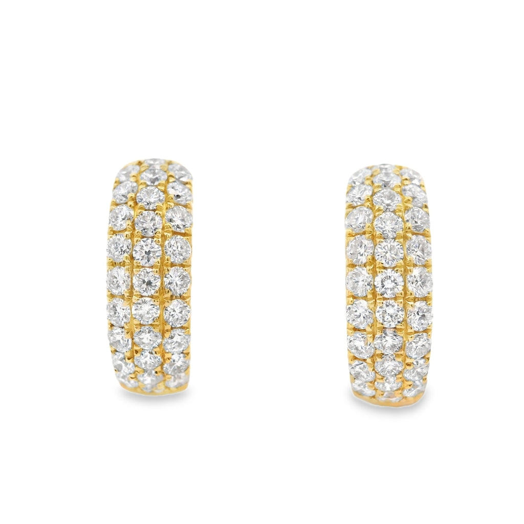 These exquisite small hoop earrings are crafted in rich 18K yellow gold and feature a dazzling total of 0.79 carats of round brilliant-cut diamonds. With 58 meticulously set diamonds, each graded G–H color and VS2–SI1 clarity, these hoops offer exceptional sparkle and timeless elegance.